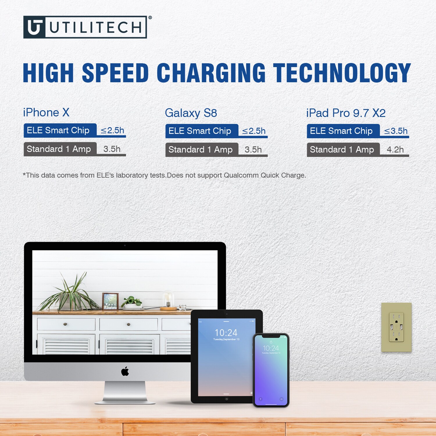 Utilitech 15-Amp 125-volt Tamper Resistant Residential Decorator USB Outlet Type A/C, Ivory (6-Pack)