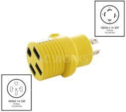 AC WORKS NEMA L14-30P to NEMA 14-50R 30-Amp 4-wire Single To Single Yellow Basic Compact Adapter