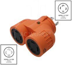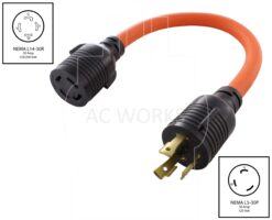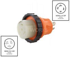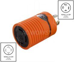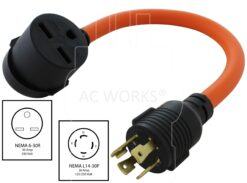 AC WORKS NEMA L14-30P to NEMA SS2-50R 30-Amp 4-wire Single To Single Orange Basic Compact Adapter