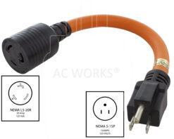 AC WORKS NEMA L14-20P to NEMA L14-30R 20-Amp 4-wire Single To Single Orange Basic Barrel Adapter