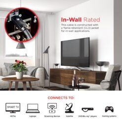 Xtreme 12-ft Black HDMI to HDMI 4K Cable – 30 AWG, In-Wall Rated, 18 Gbps Ethernet Connectivity