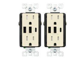Utilitech 20-Amp 125-volt Tamper Resistant Residential Decorator USB Outlet Type A/C, Light Almond (2-Pack)