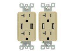 Utilitech 20-Amp 125-volt Tamper Resistant Residential Decorator USB Outlet Dual Type A, Light Almond (2-Pack)
