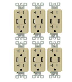 Utilitech 20-Amp 125-volt Tamper Resistant Residential Decorator USB Outlet Dual Type A, Light Almond (6-Pack)