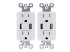 Utilitech 15-Amp 125-volt Tamper Resistant Residential Decorator USB Outlet Dual Type A, White (2-Pack)