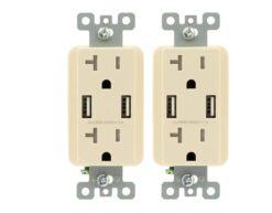 Utilitech 20-Amp 125-volt Tamper Resistant Residential Decorator USB Outlet Dual Type A, Light Almond (2-Pack)