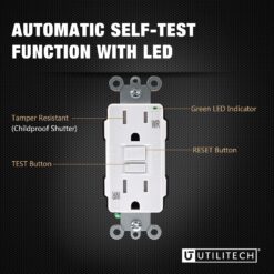 Utilitech 15-Amp 125-volt Tamper Resistant Weather Resistant GFCI Residential Decorator Outlet, White (6-Pack)
