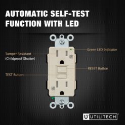 Utilitech 15-Amp 125-volt Tamper Resistant Weather Resistant GFCI Residential Decorator Outlet, Light Almond (2-Pack)