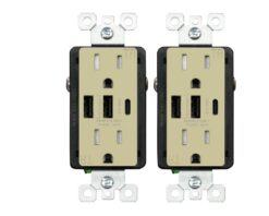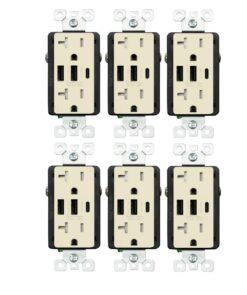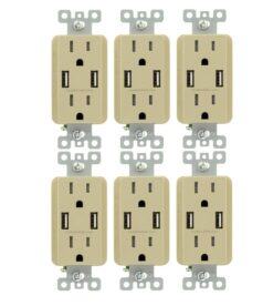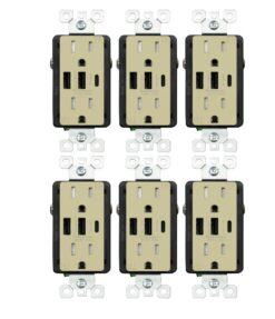 Utilitech 15-Amp 125-volt Tamper Resistant Residential Decorator USB Outlet Type A/C, Ivory (6-Pack)